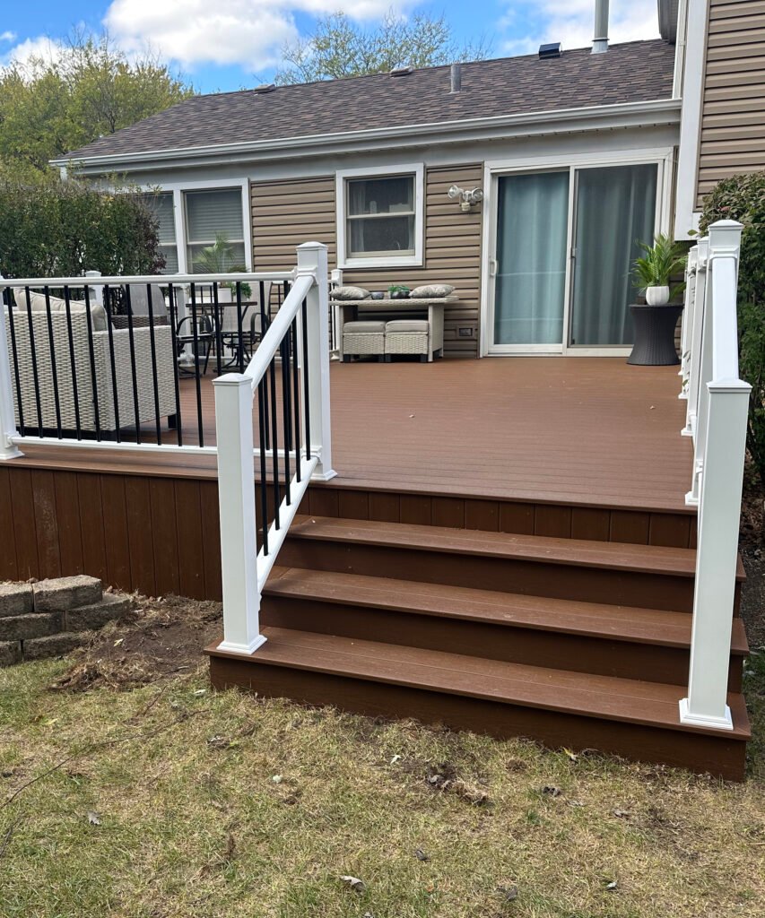 Unlike traditional wood decking, composite deck boards are designed to resist moisture, fading, splintering, and insect damage. Professional composite deck installation includes structural framing, secure fastening systems, proper spacing, drainage planning, and integration with railings and stairs.